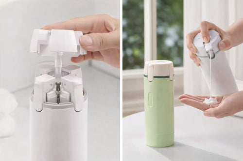 Sí. El dispensador cuenta con doble sistema de sellado: tapa de rosca de seguridad + cabezal de bomba plegable. Esto evita derrames y filtraciones accidentales, incluso durante vuelos o trayectos largos. Puedes llevar tus líquidos con tranquilidad sin miedo a que se manchen tus pertenencias.