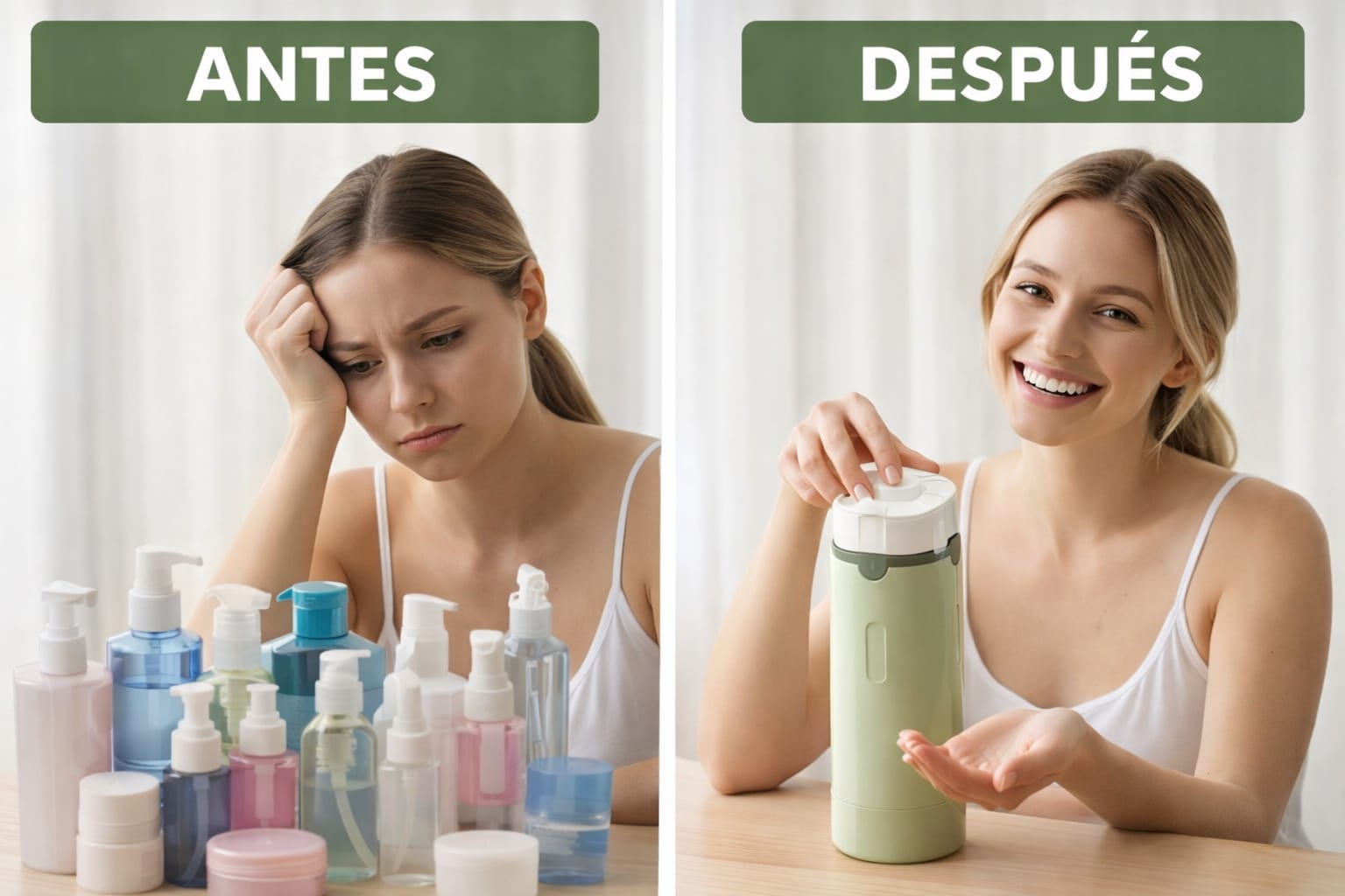 - ✈️ Cuatro productos en un solo dispensador compacto — ahorra espacio en tu maleta y simplifica tu rutina de viaje.